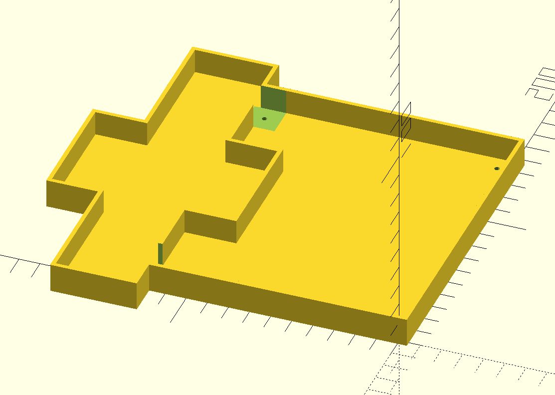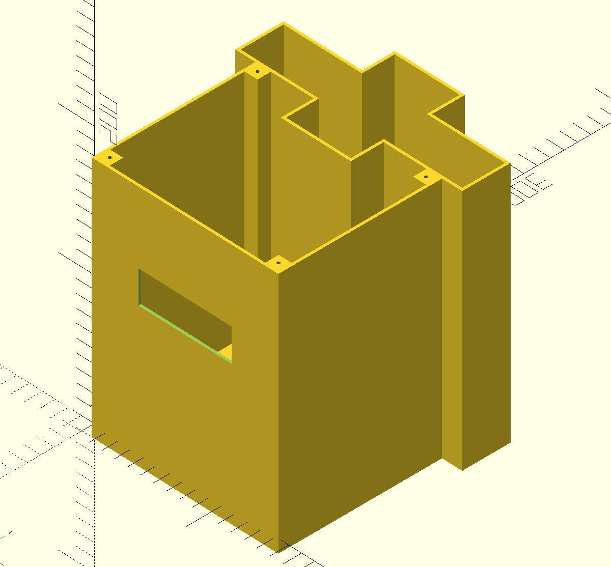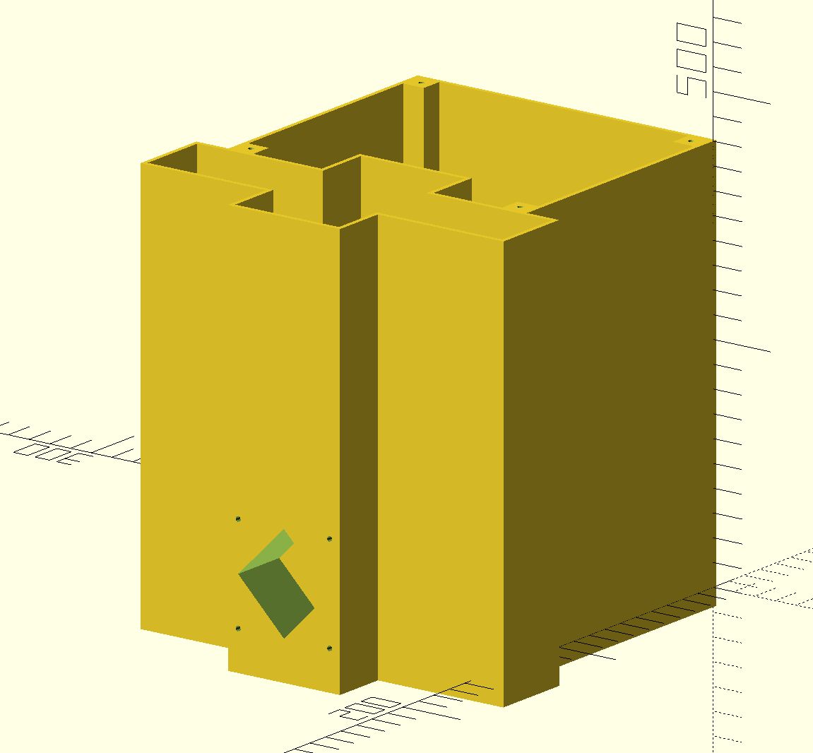 We designed the box for 3D printing. For better access when installing the modules, the rear wall will be removable in the next version. Box view: