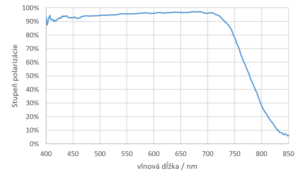 We see that our polarizing filters can be used in the range of 400 - 700 nm without any problems. However, since the degree of polarization of the skyglow of the night sky is usually less than 50%, they can also be used for this purpose even at a wavelength of 750 nm.
